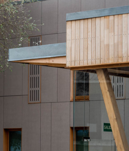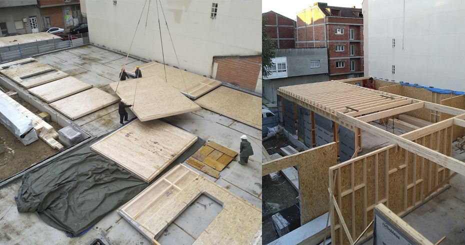 Proyectamos un edificio de madera donde tanto los sistemas estructurales, como de cerramiento, tabiquería y gran parte de los acabados se resuelven mediante elementos tecnológicos de madera maciza y derivados de la misma. Estos sistemas permiten un alto nivel de prefabricación y desenvolver un proceso completo de construcción en seco.